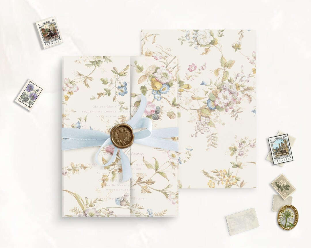 Floral Vellum Wedding Invitation, vellum wrap wedding invitations ...