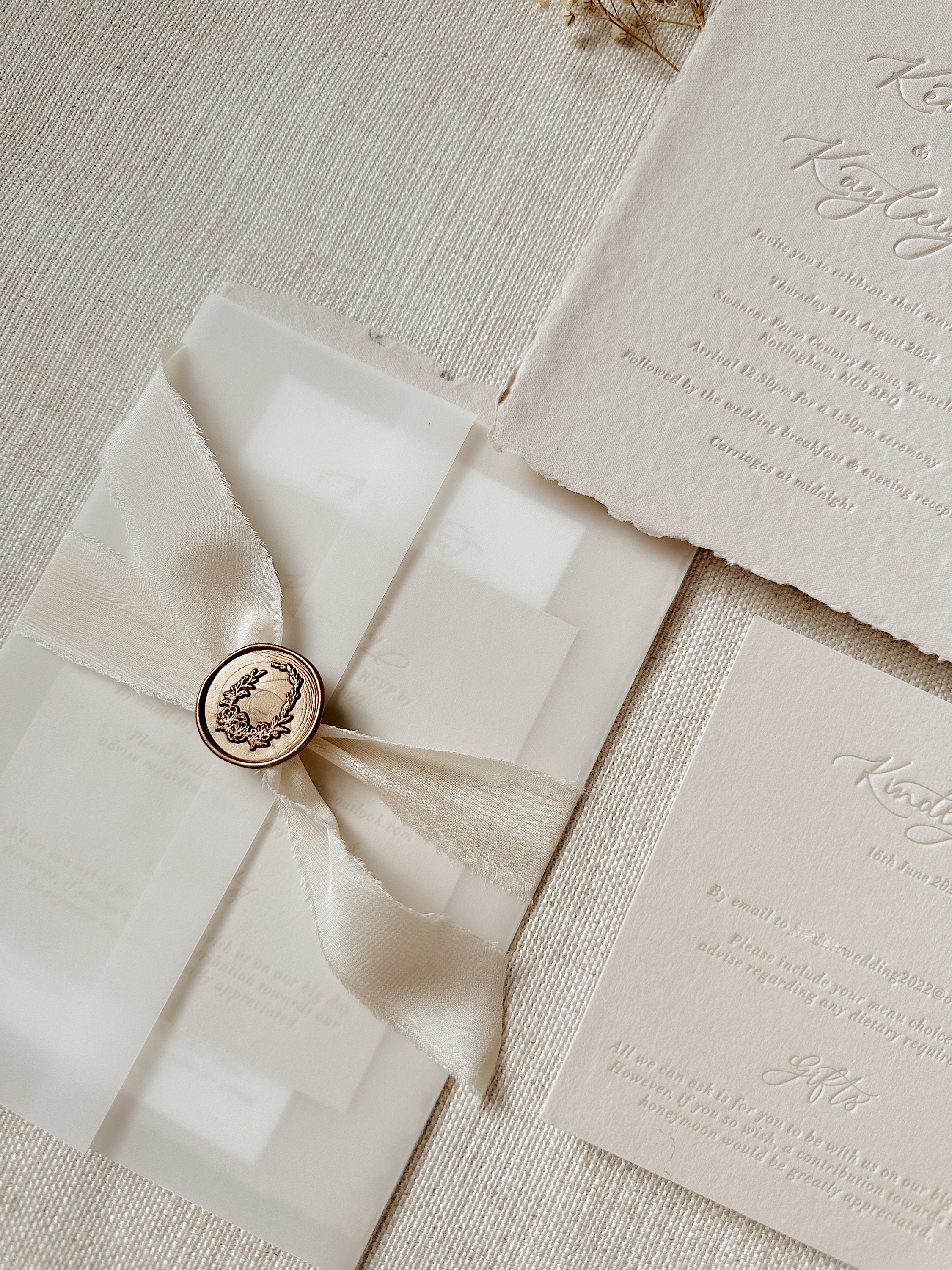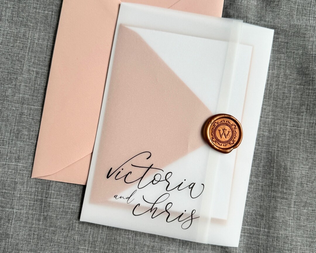 Vellum Wrapped Wedding Invitation With Handmade Ribbon and Wax | Etsy