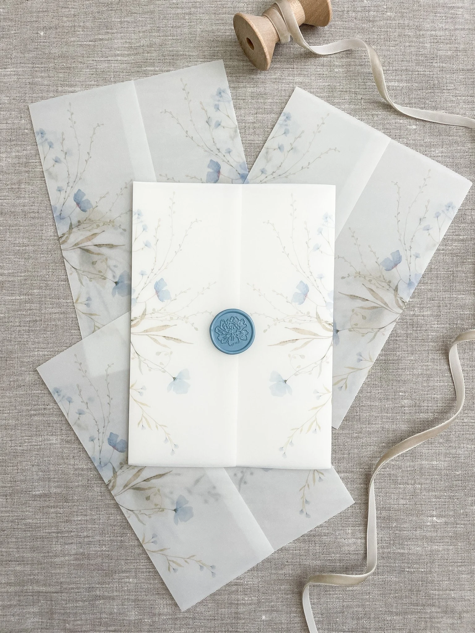 Vellum Wrapped Wedding Invitation With Handmade Ribbon and Wax Seal ...