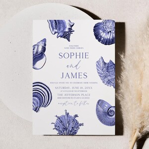 Editable Sea Shell Wedding Invitation Set, Printable Wedding Invite ...