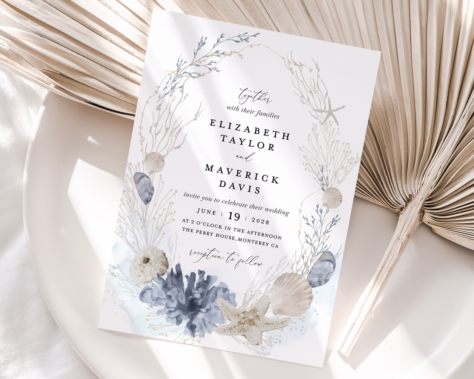Whimsical Sea Fauna Wedding Invitation Template, Shells, Coral, and ...