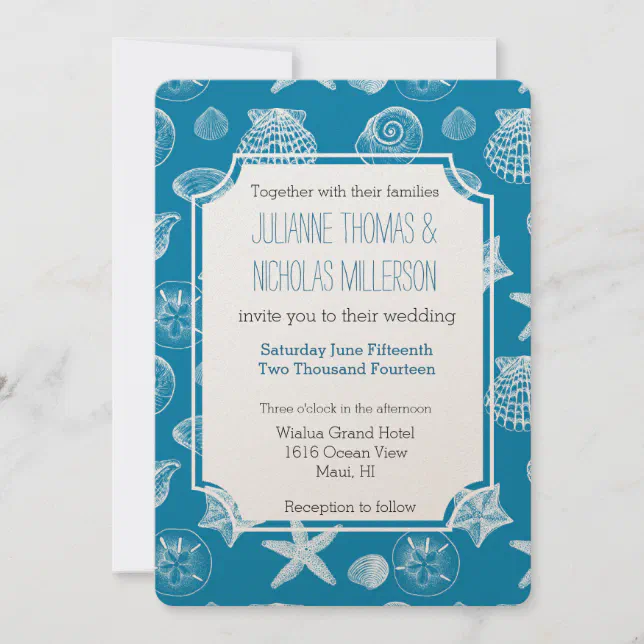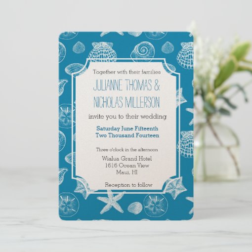 Blue Ocean Sea Shell Seashells Beach Wedding Invitation | Modern ...