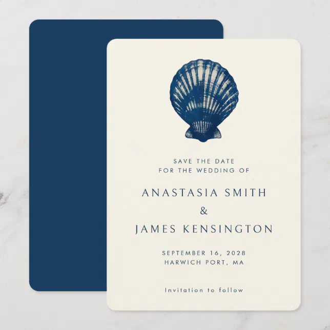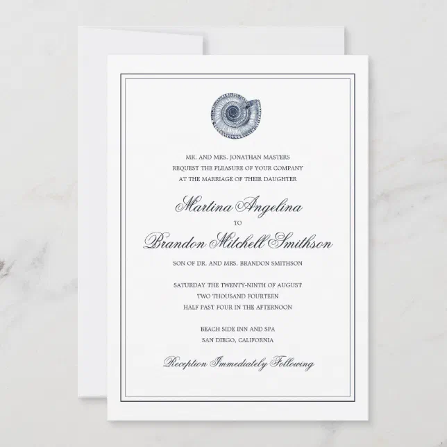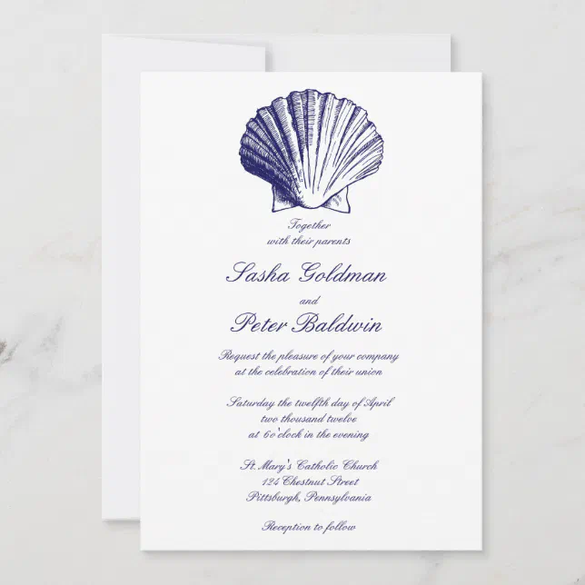 Navy Blue Sea Shells Wedding Invitation | Zazzle