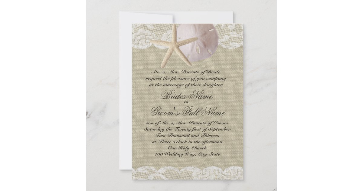 Romantic Lace and Sea Shell Beach Wedding Invitation | Zazzle