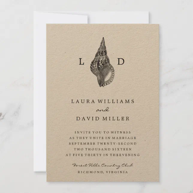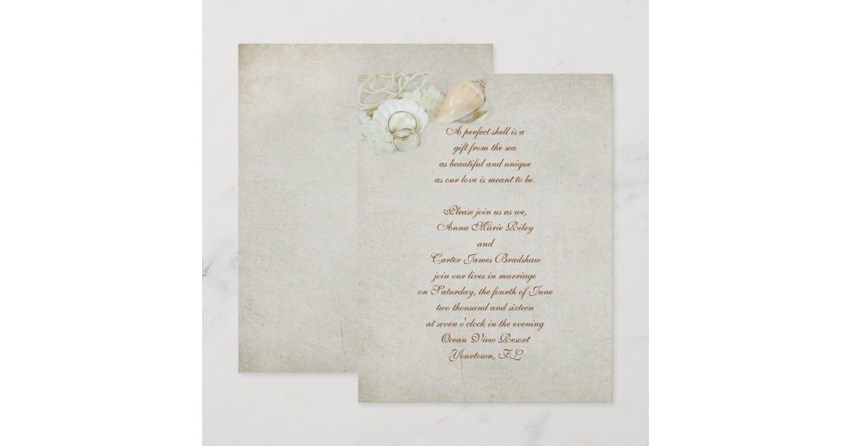 Rustic Beach Sea Shell Wedding Invitation | Zazzle