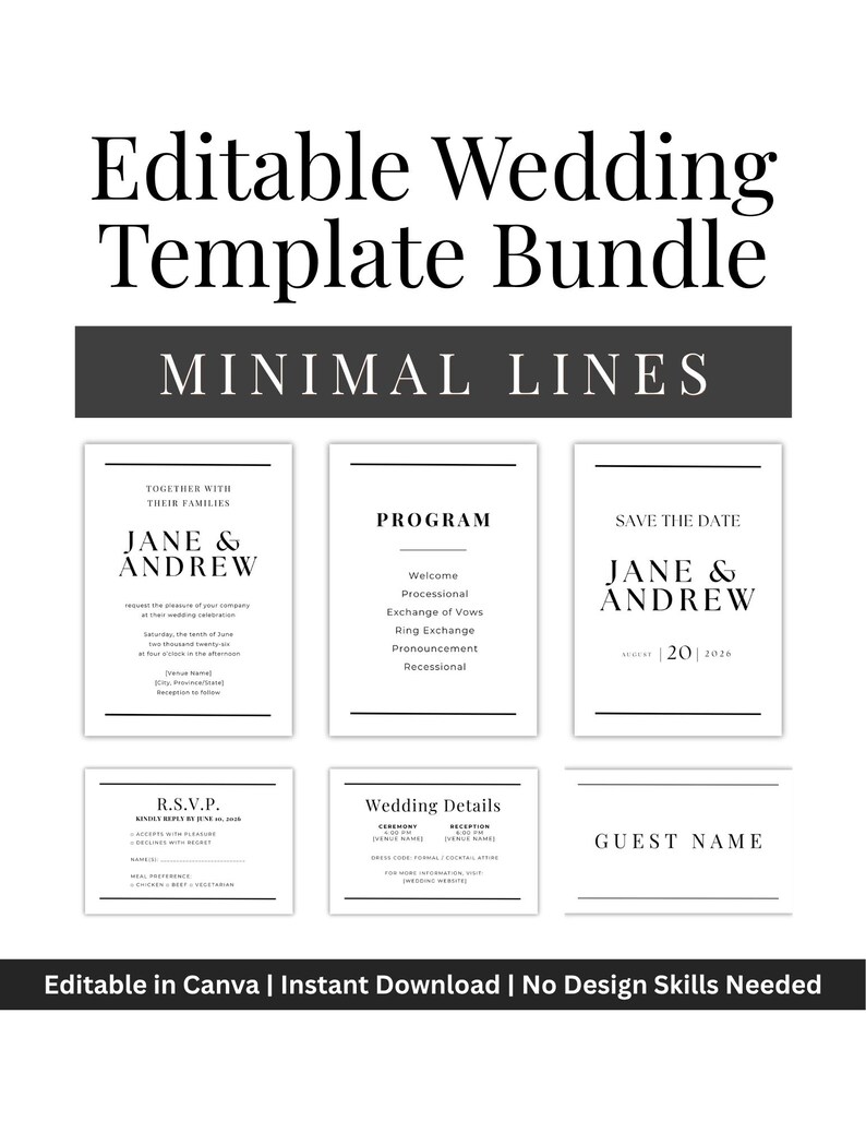 Editable Wedding Invitation Suite Templates: Invite, RSVP, Detail ...