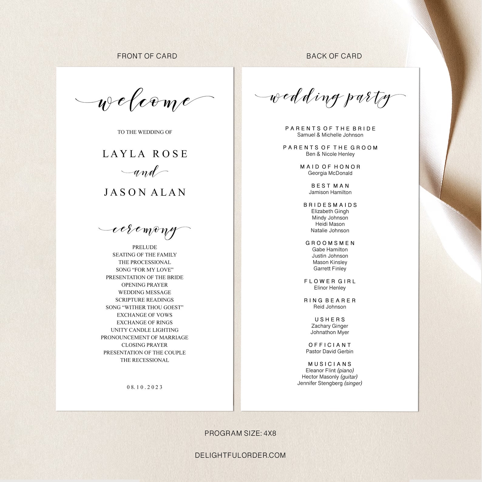 Custom Wedding Program, Front + Back Wedding Ceremony Program, Digital ...