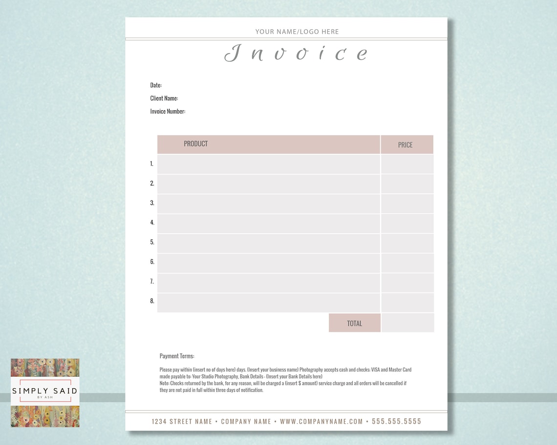 Invoice Editable Template Wedding Printable Invoice Payable | Etsy