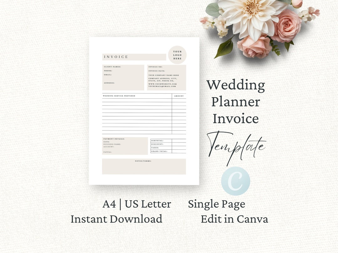 Wedding Planner Organize Invoice Template, Editable PDF Files, Custom ...