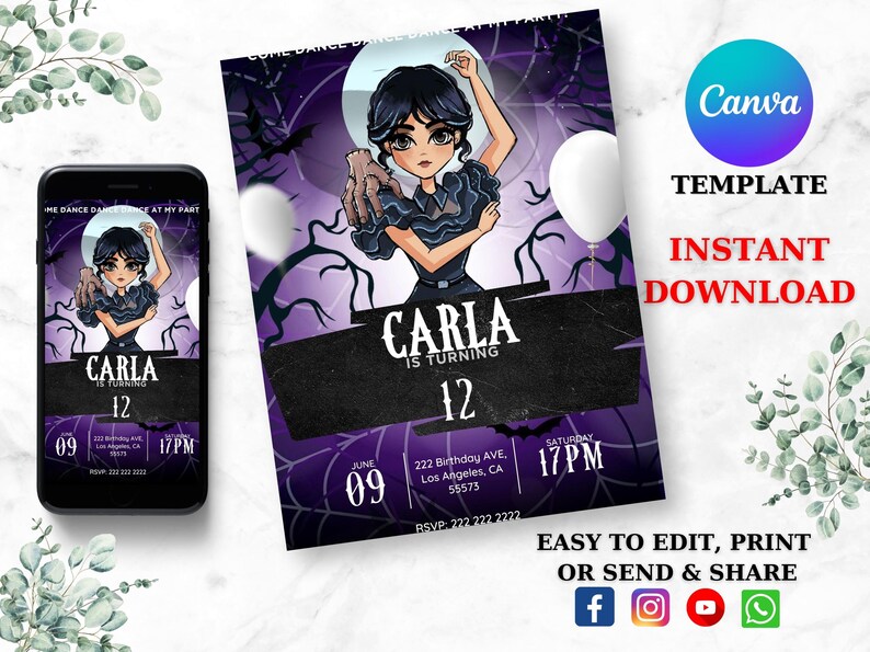 EDITABLE CANVA Wednesday Birthday Invitation - Etsy