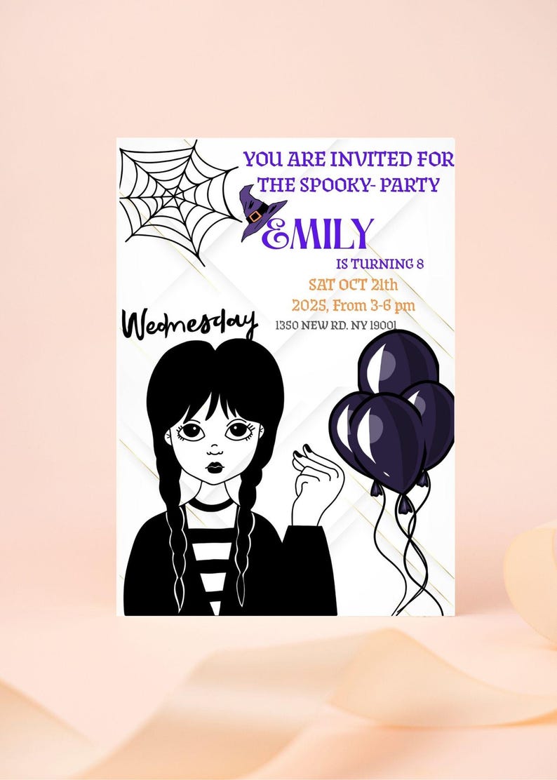Wednesday Theme Birthday Invitation - Etsy