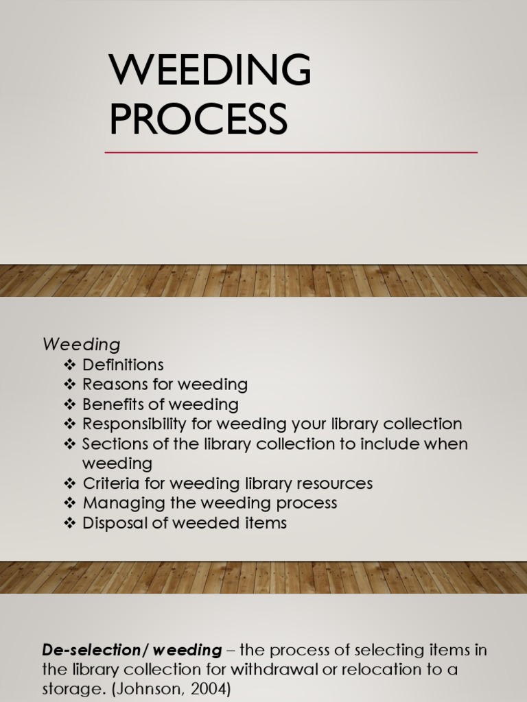 Collection development presentation (weeding) | PPTX | Landscaping ...