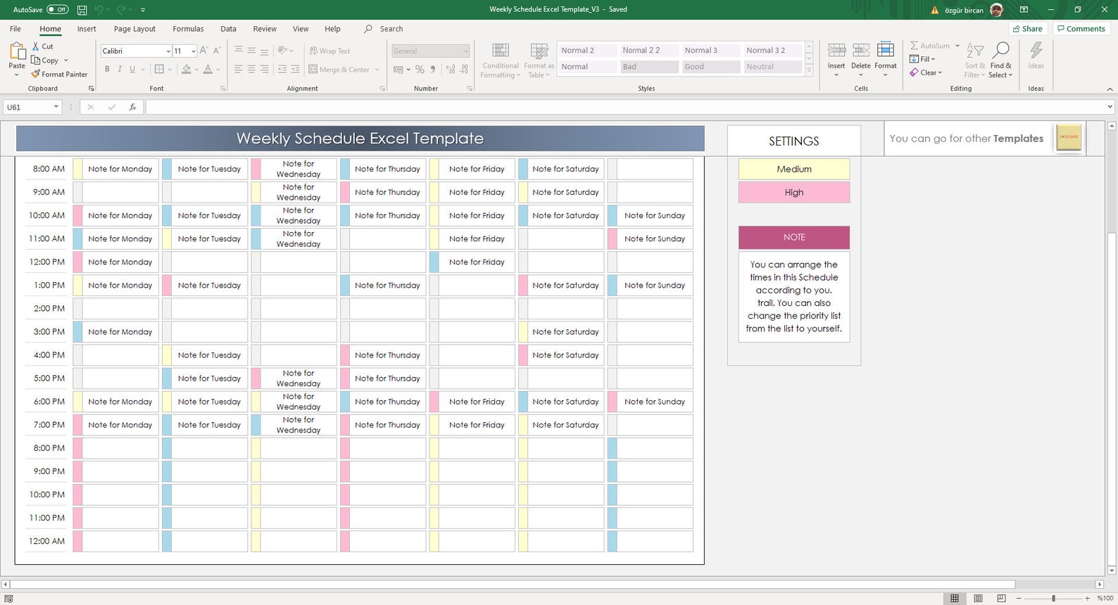 Weekly Schedule Excel Template | Planner Template | Excel Schedule ...
