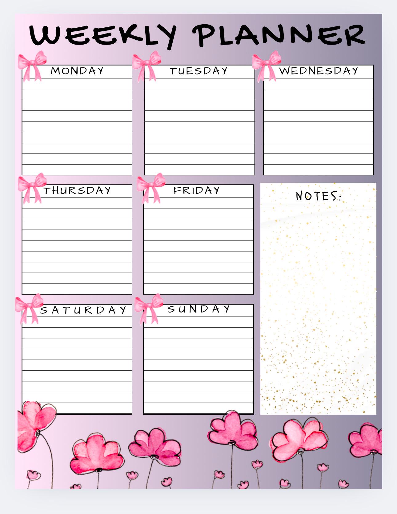 Weekly Planner, Weekly To Do List, Weekly Schedule, Planner