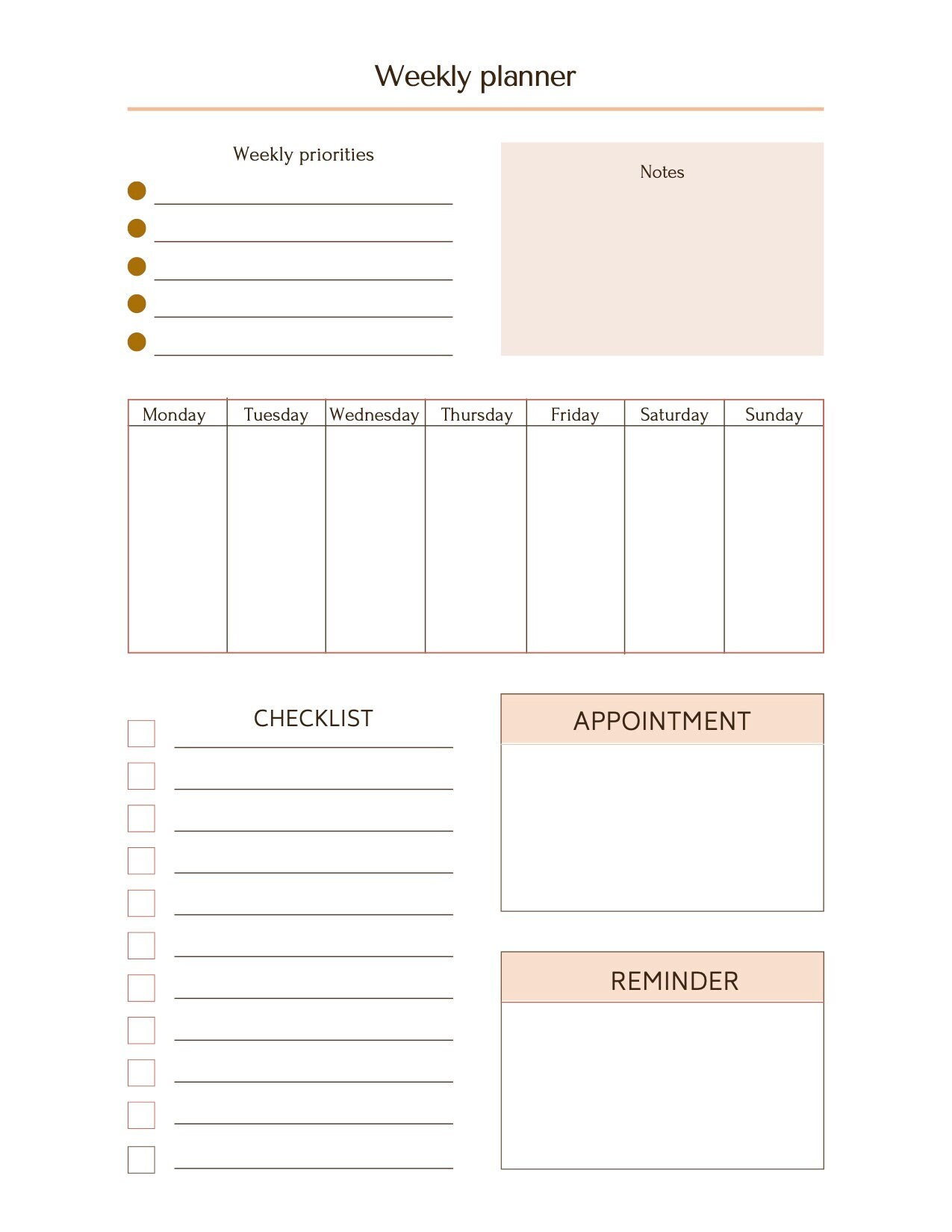 Weekly planner template. Weekly planner and to do list. Minimalist ...