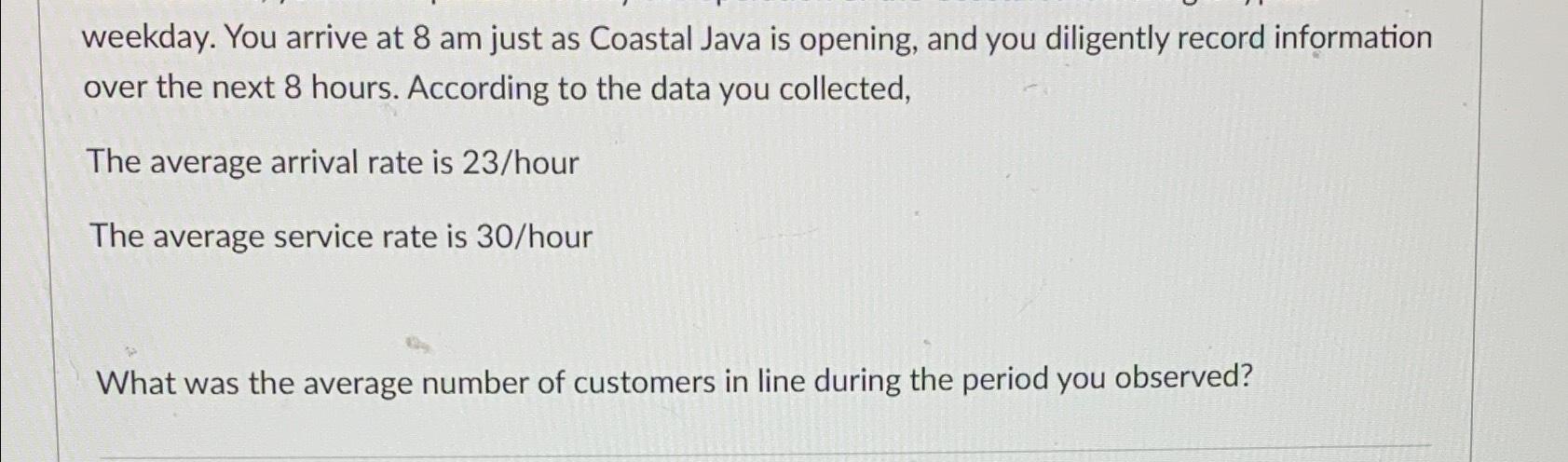 Solved weekday. You arrive at 8 am just as Coastal Java is | Chegg.com