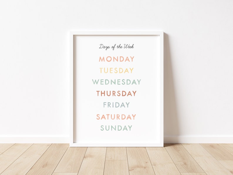 Weekdays Chart Illustration Artwork Print Poster Calming | Etsy