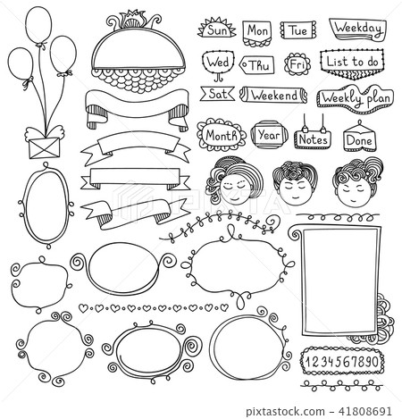 Collection of doodle frames, weekdays and ribbons - Stock Illustration ...