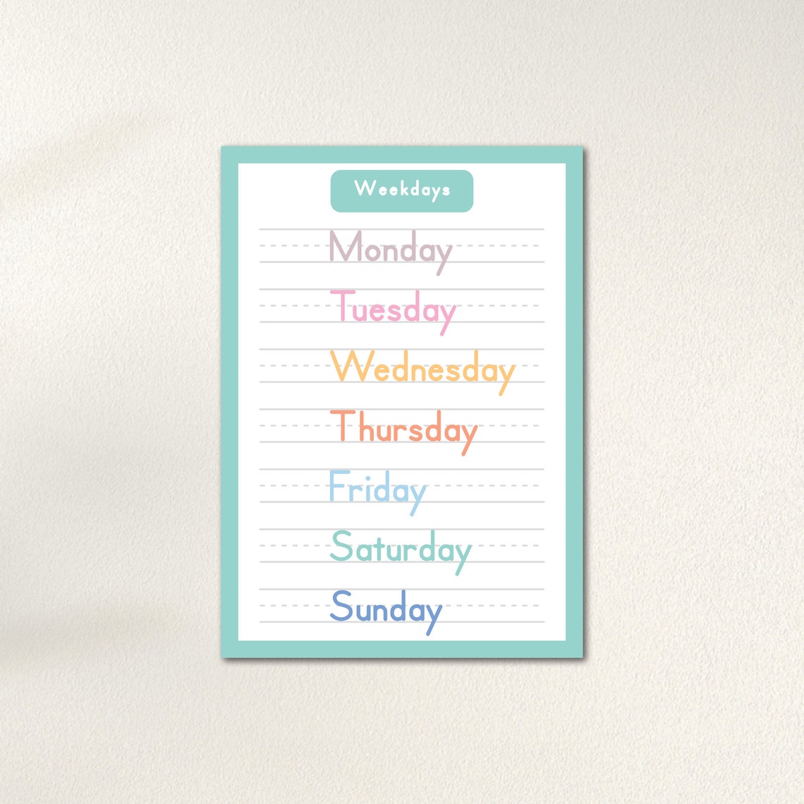Kids Educational Print Days of the Week Weekdays Wall Art Days of the ...