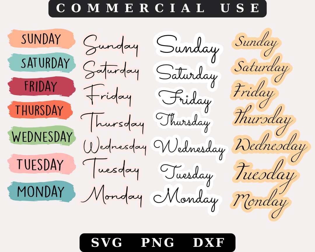 Weekdays Digital Stickers: SVG, PNG, DXF Bundle - Etsy Australia