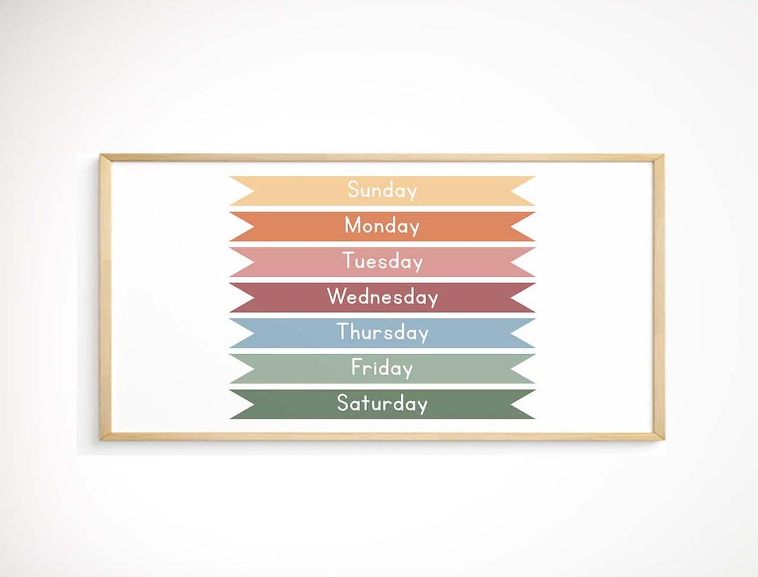 Days of the Week Printable Educational Wall Art Playroom | Etsy