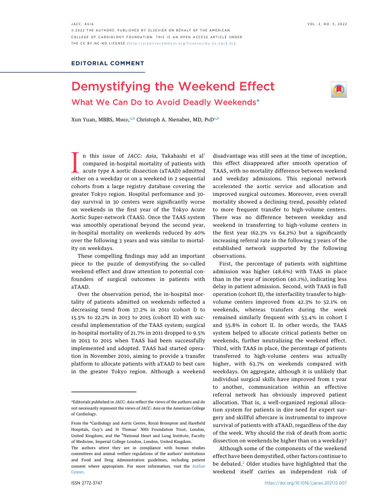 Demystifying the Weekend effect what we can do to avoid deadly weekends ...