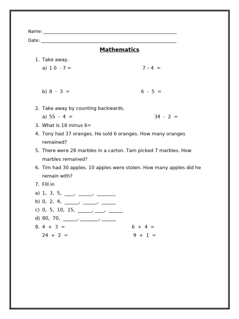 Weekend Math Practice: Numbers, Operations, and Comparisons | Course Hero