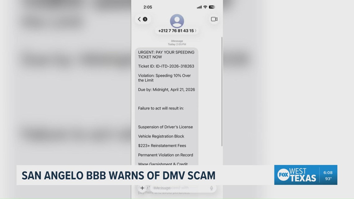 San Angelo BBB warns of DMV text scam targeting residents | myfoxzone.com