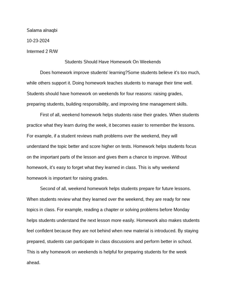 Importance of Weekend Homework | PDF | Homework | Learning