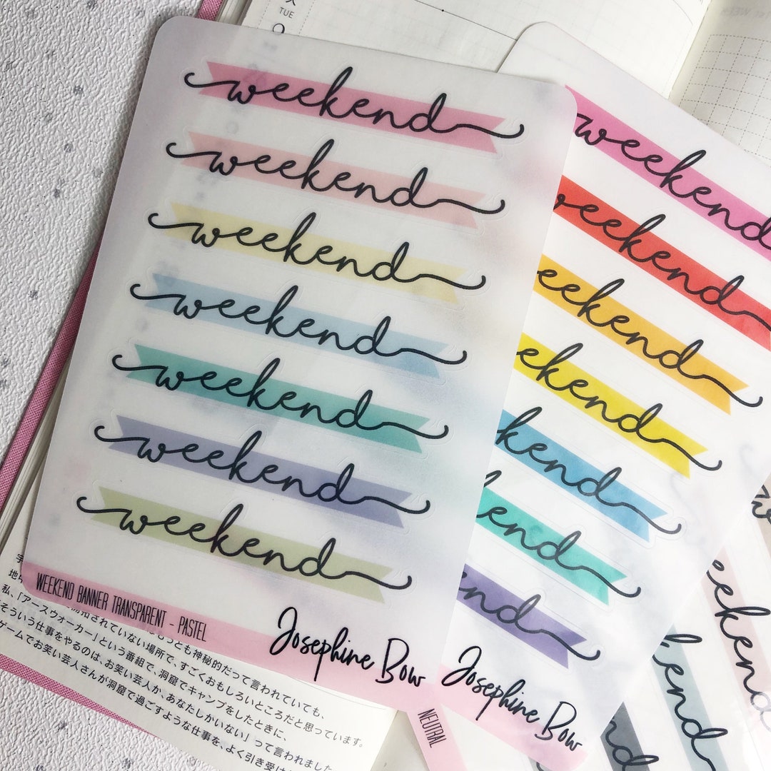 TRANSPARENT WEEKEND BANNERS 3 Colour Combinations Functional Stickers ...