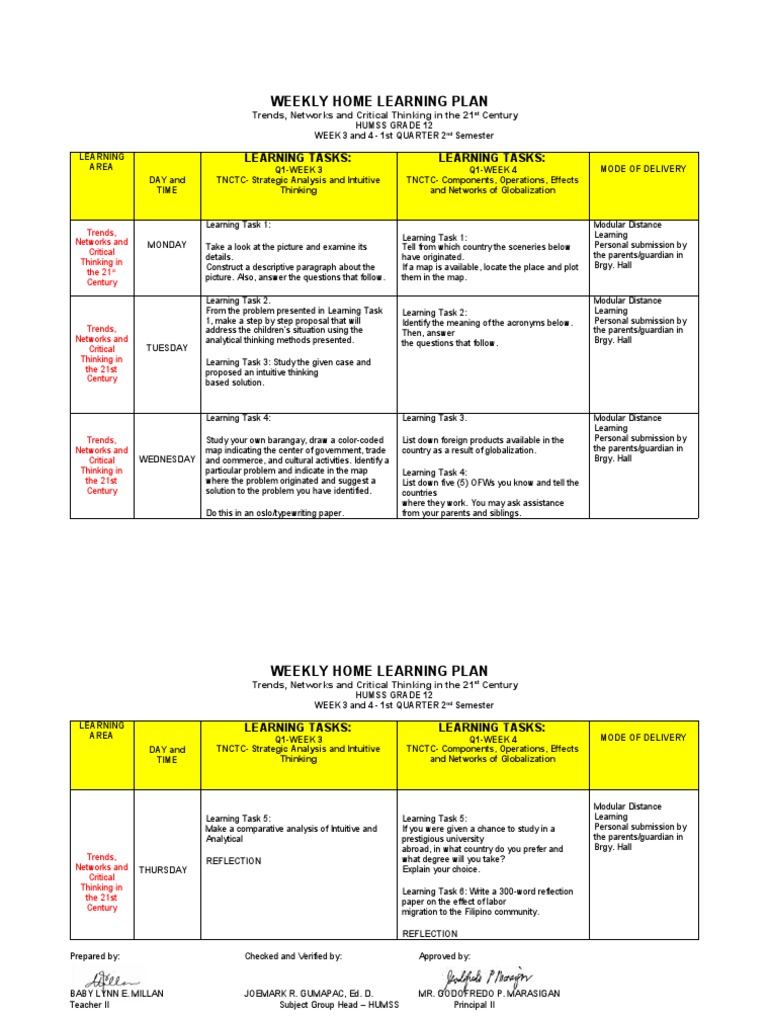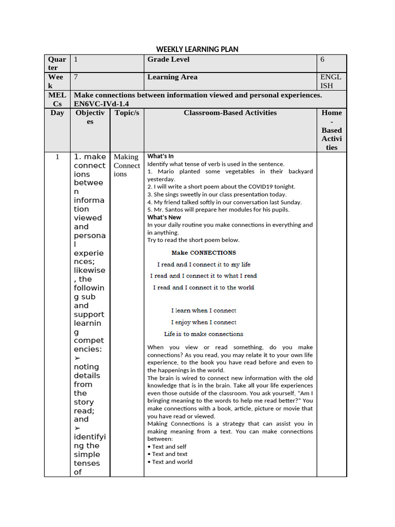 Weekly Learning Plan - WK 1 | PDF | Language Arts & Discipline