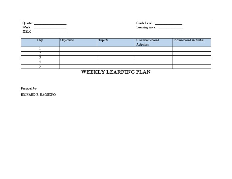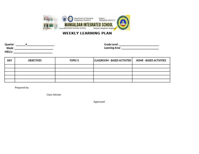WEEKLY LEARNING PLAN Template | PDF | Learning | Teachers
