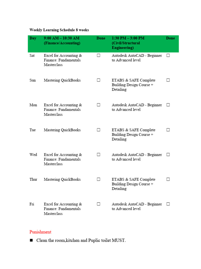 Weekly Learning Plan | PDF | Career & Growth | Home & Garden
