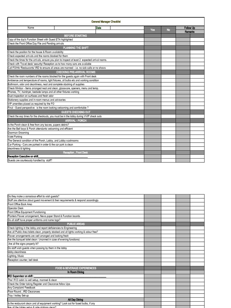 General Manager Daily Operations Checklist | PDF | Housekeeping ...