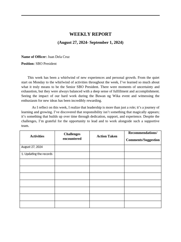 Weekly report template (1) | DOCX