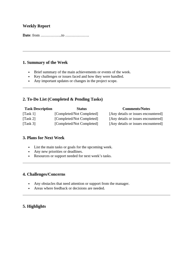 Weekly Work Report Template in Microsoft Word, PDF | Template.net