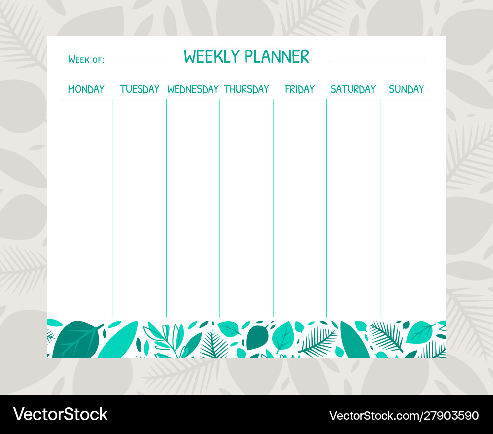 Simple Weekly Planner template, weekly schedule 11842609 Vector Art at ...