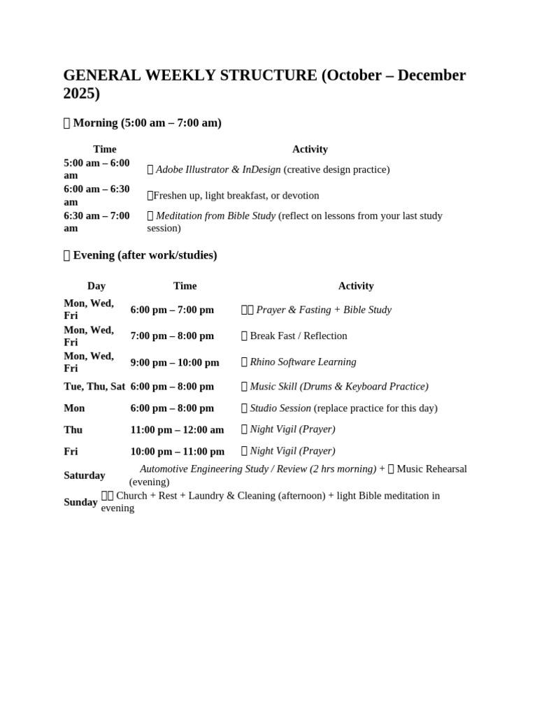 24 Hour Weekly Schedule Template - Word | Google Docs - Highfile