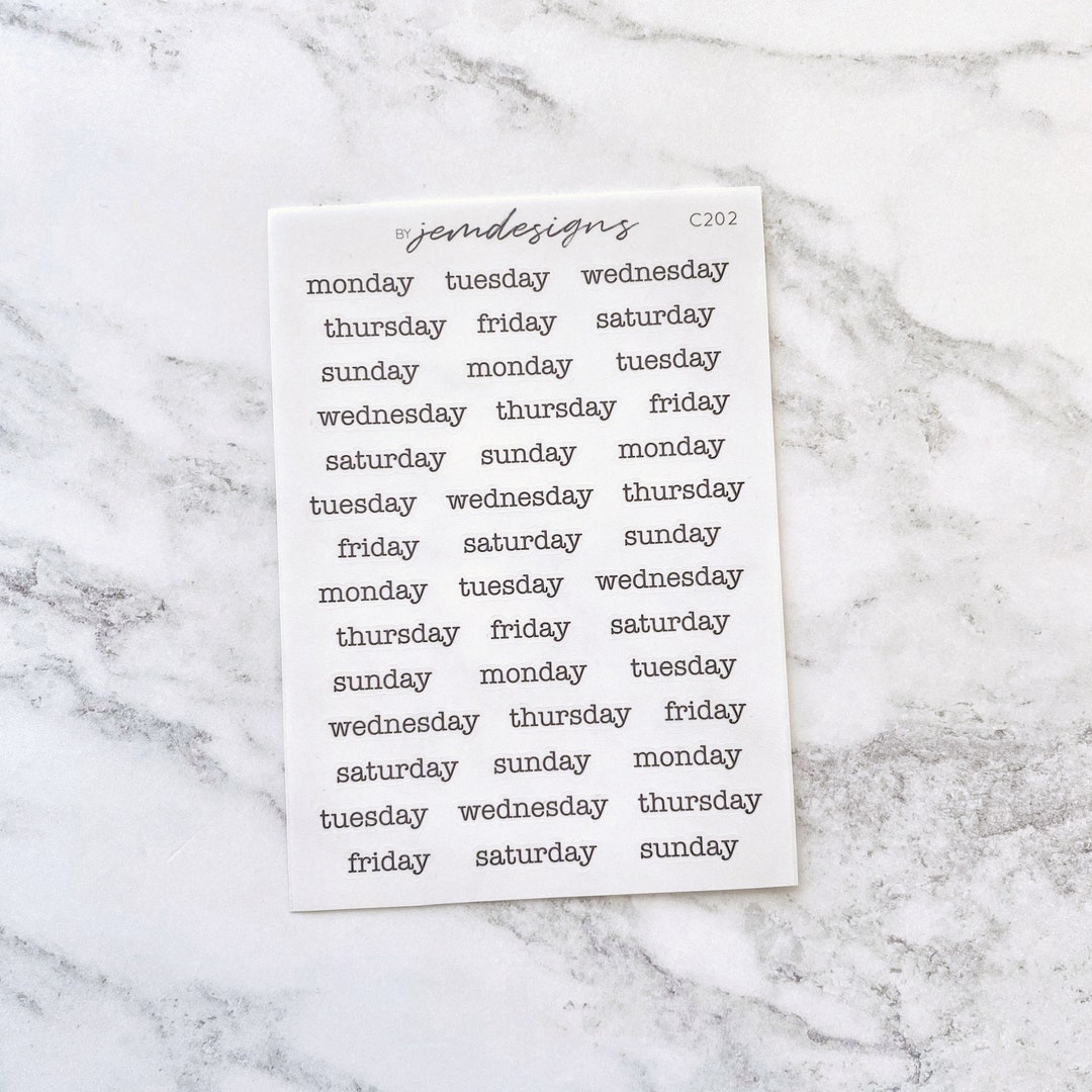 CLEAR Days of the Week Typewriter Font Stickers, Functional Planner ...