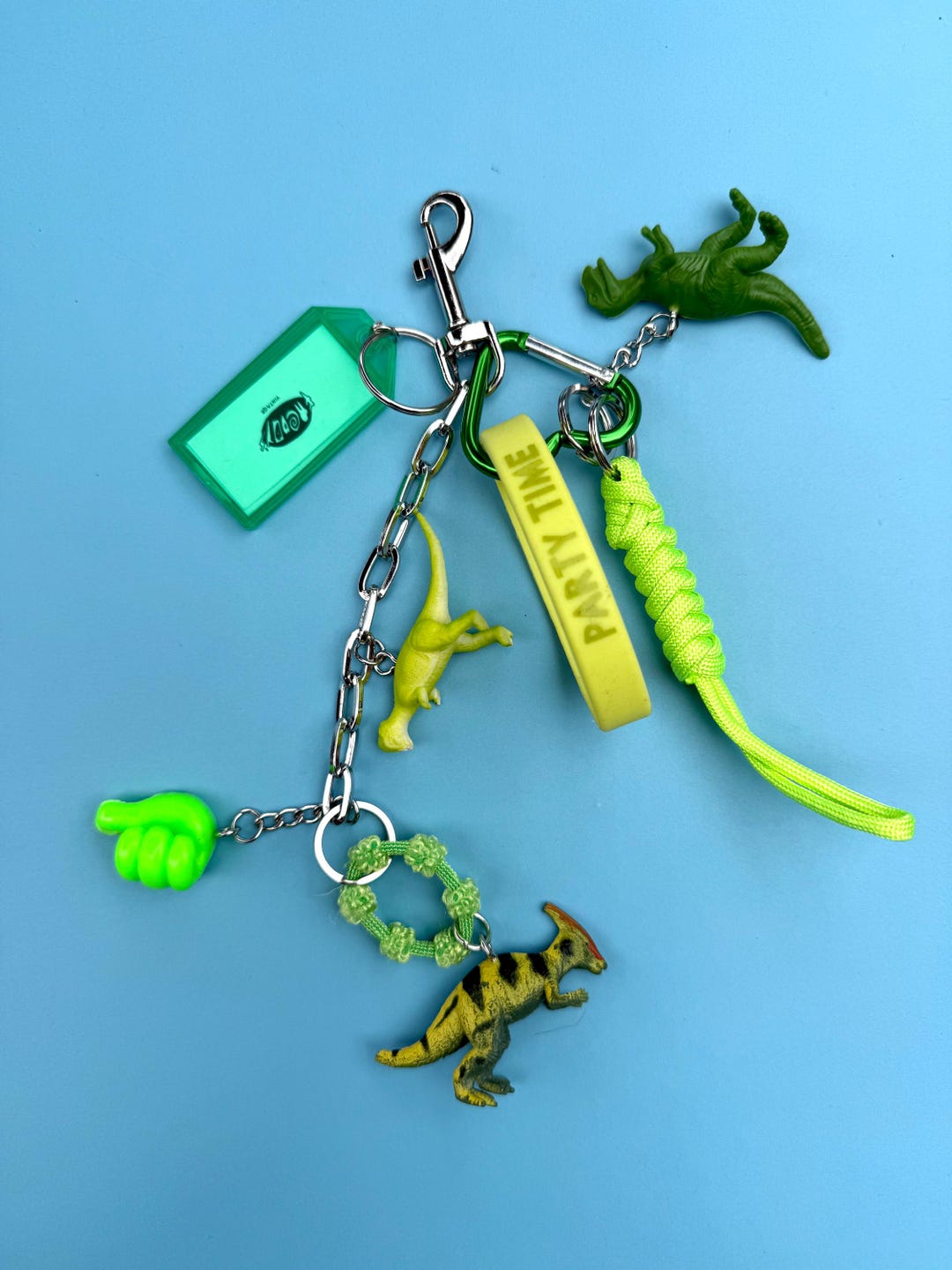 Dinosaur Keychain Set | Neon Green “party Time” Charm | Jurassic ...