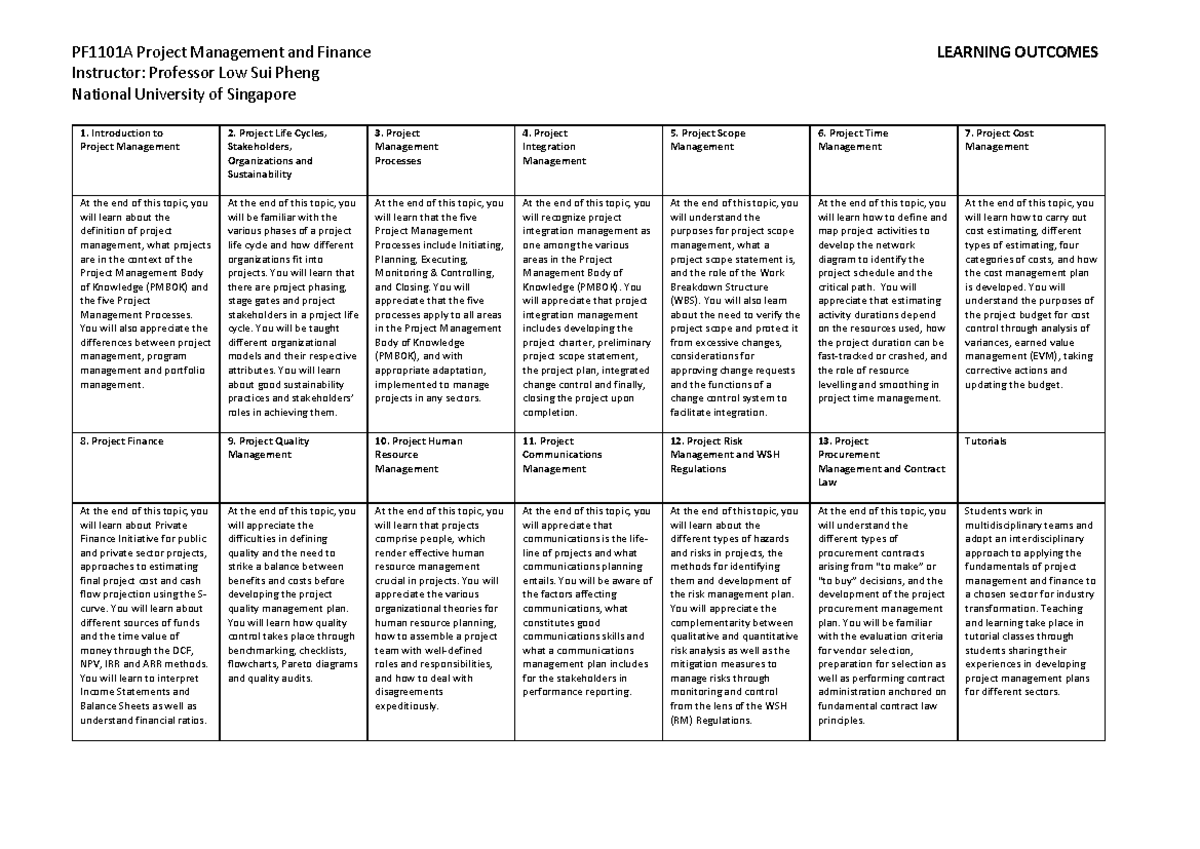 PF1101A Project Management & Finance: Learning Outcomes Overview - Studocu
