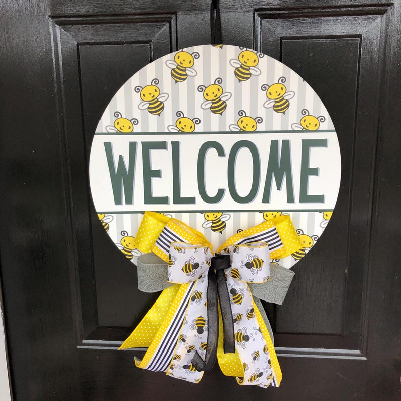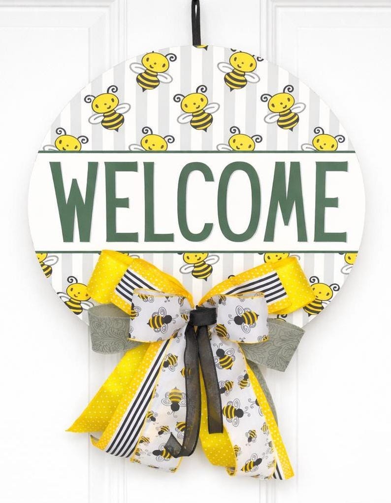 Front Door Hanger, Farmhouse Bee Decor, Round Welcome Sign, Spring ...