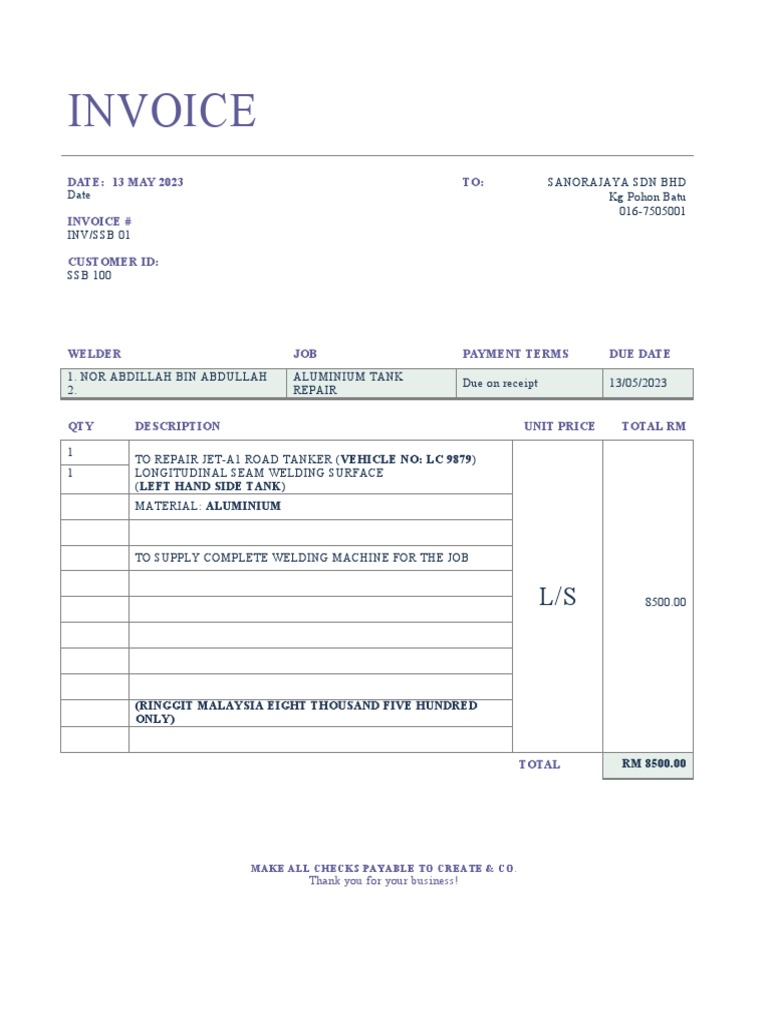 Welder Invoice Template - Edit I Download - Saldoinvoice