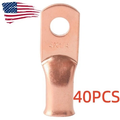 40PCS WIRE WELDING Pure Copper Lug 4AWG Connectors Ring 1/4" Battery ...