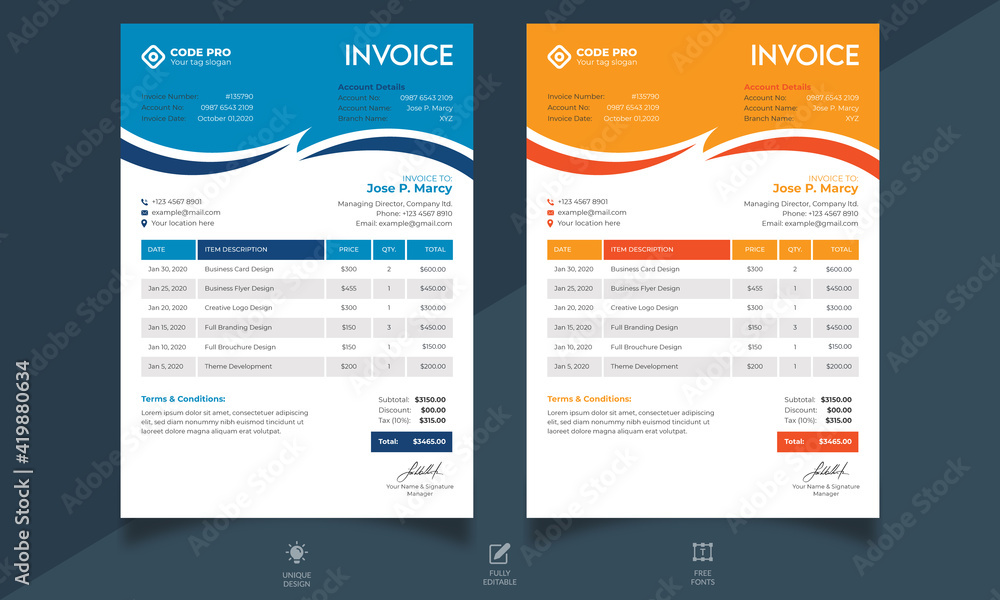 Modern Corporate Business Invoice Template Design | PSD Free Download ...