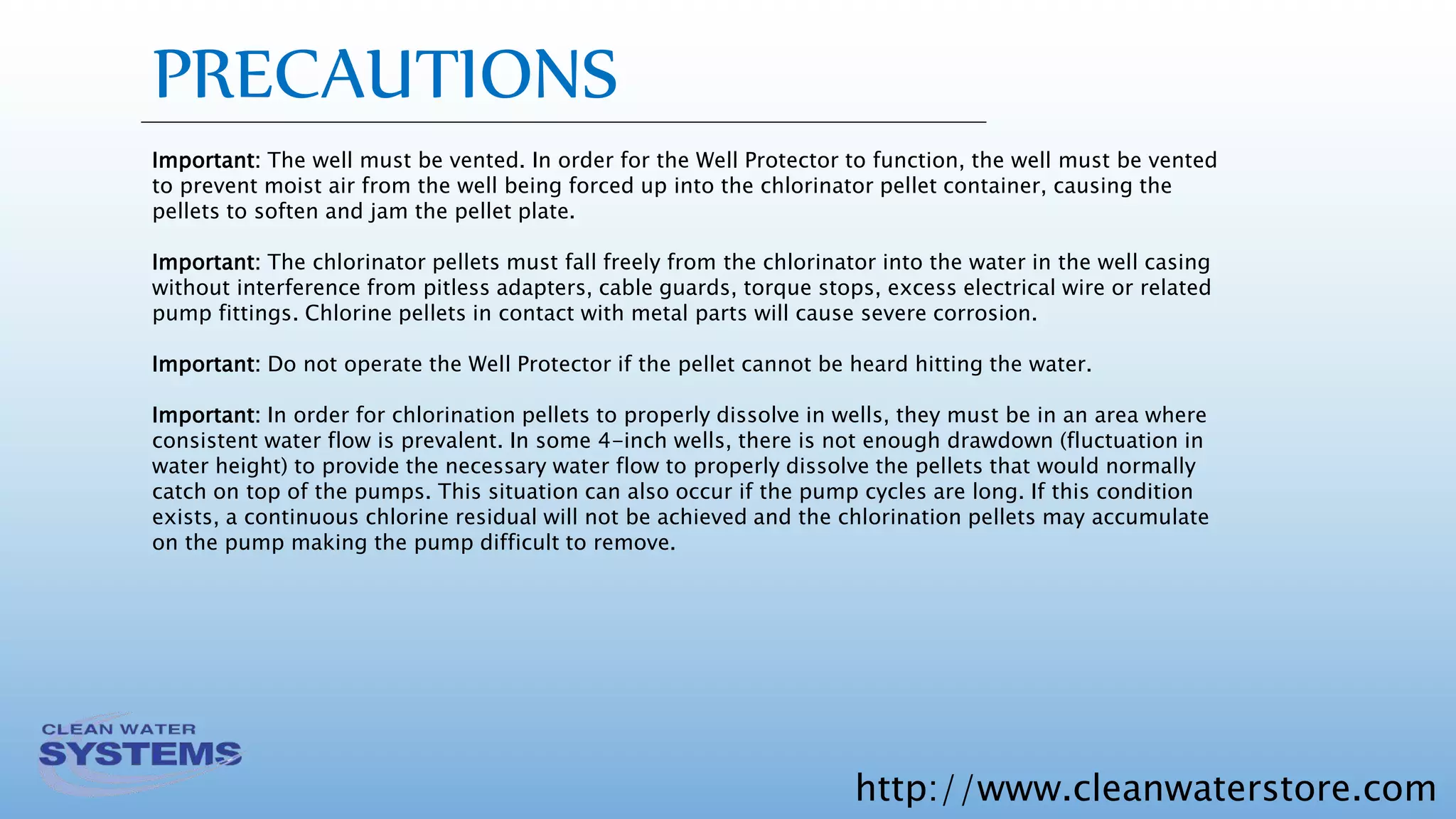 Well Protector Dry Pellet Chlorinator Installation, Operation, and ...