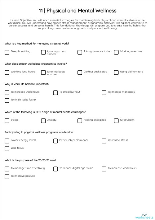 11 | Physical and Mental Wellness. Interactive worksheet | TopWorksheets