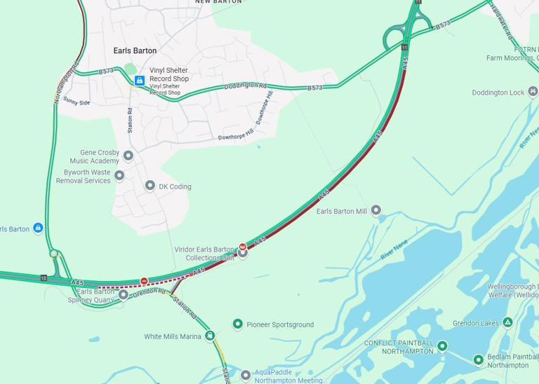‘Severe' delays on A45 caused by nearby fire as westbound lane closed