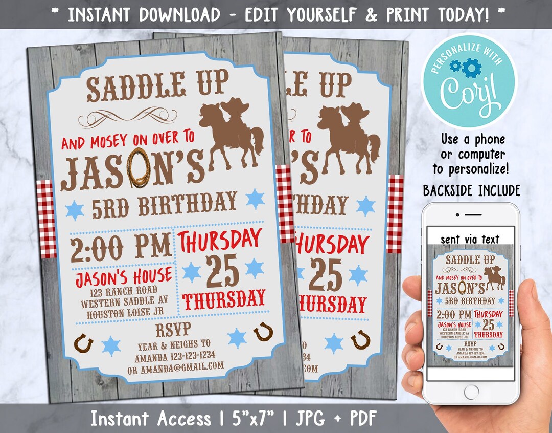 Editable Country Western Invitation, Cowboy Birthday Invitation, Ride ...