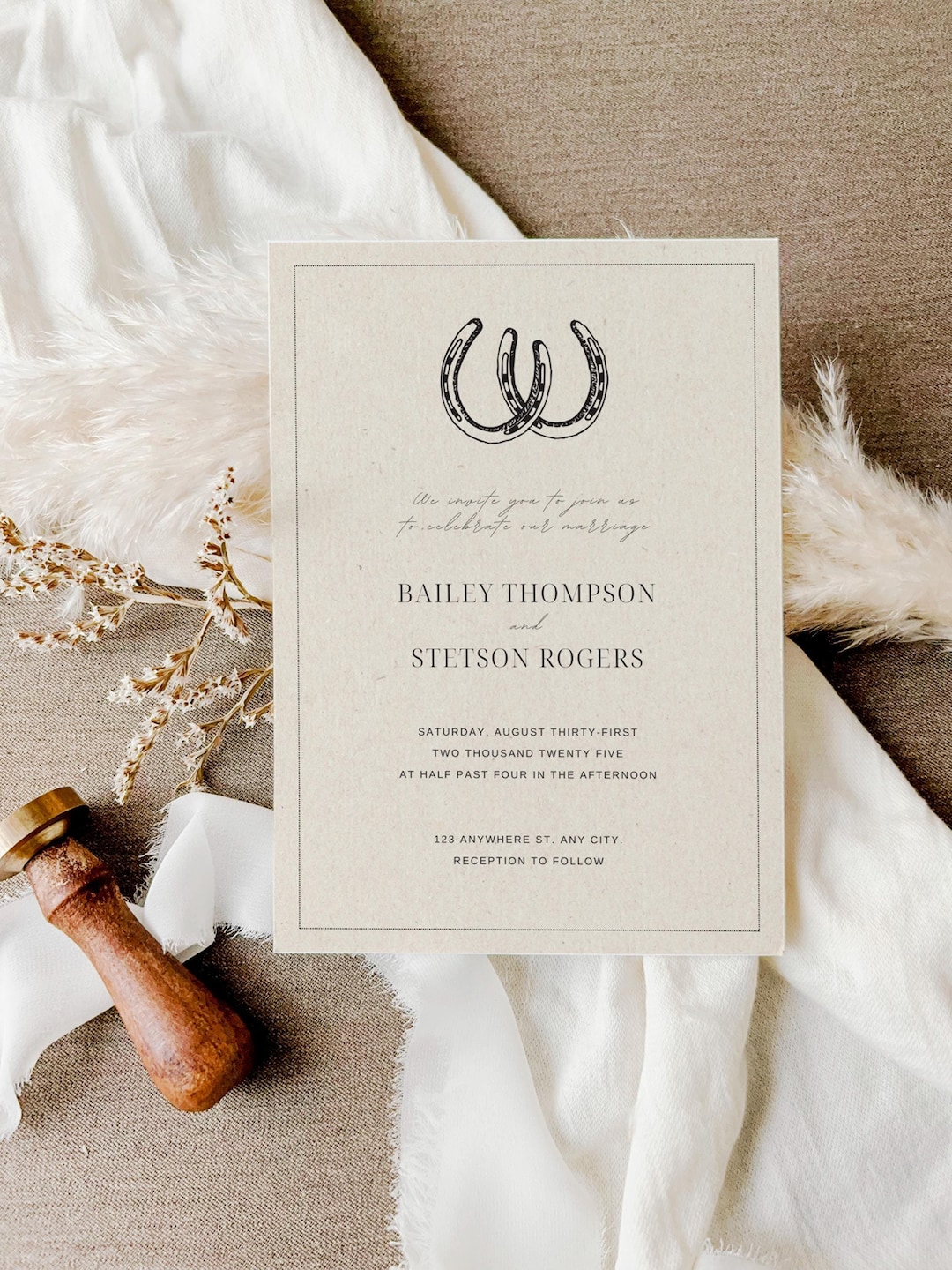 Editable Western Wedding Invitation Template Modern Horseshoe Wedding ...